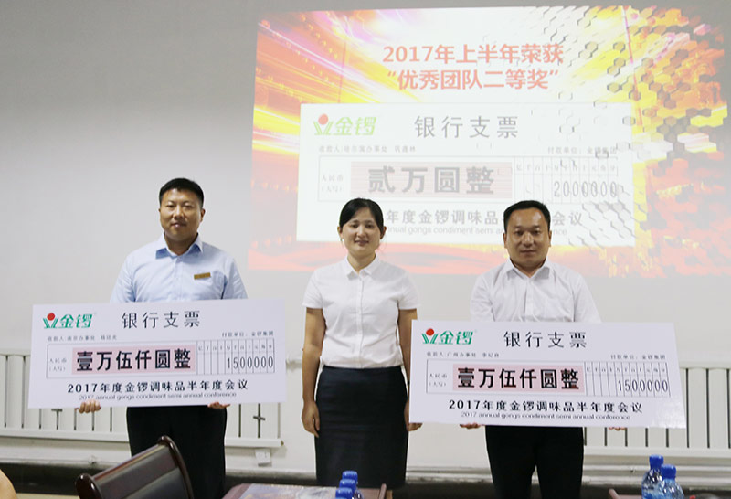會上,各辦事處經理分別就2017年上半年銷售業(yè)績、渠道開發(fā)達成進行了總結匯報,杜總對各辦事處目前存在問題進行一一點評; 隨后,對根據(jù)調味品事業(yè)部銷售激勵方案評選出的團隊、成長貢獻人員進行了表彰獎勵;杜總要求所有人員要向先進人員學習,平時工作中腳踏實地、戒驕戒躁、奮力前進、再創(chuàng)佳績;最后杜總通報了調味品事業(yè)部2017年上半年的生產、銷售、成本、利潤等各項經營指標的完成情況,明確指出了事業(yè)部在發(fā)展中存在的問題及改進方向,同時對各項工作的開展做出了重點部署,要求各單位在下半年要再接再厲、開拓進取,出色完成集團公司下達給事業(yè)部的各項任務。